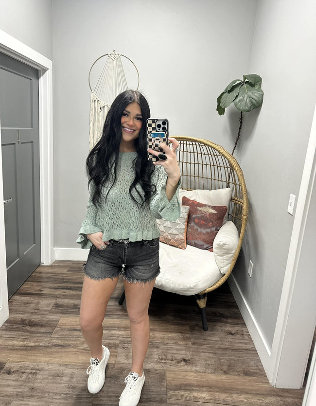 ALEXIS MINT KNIT SCALLOP RUFFLE BOTTOM SWEATER TOP