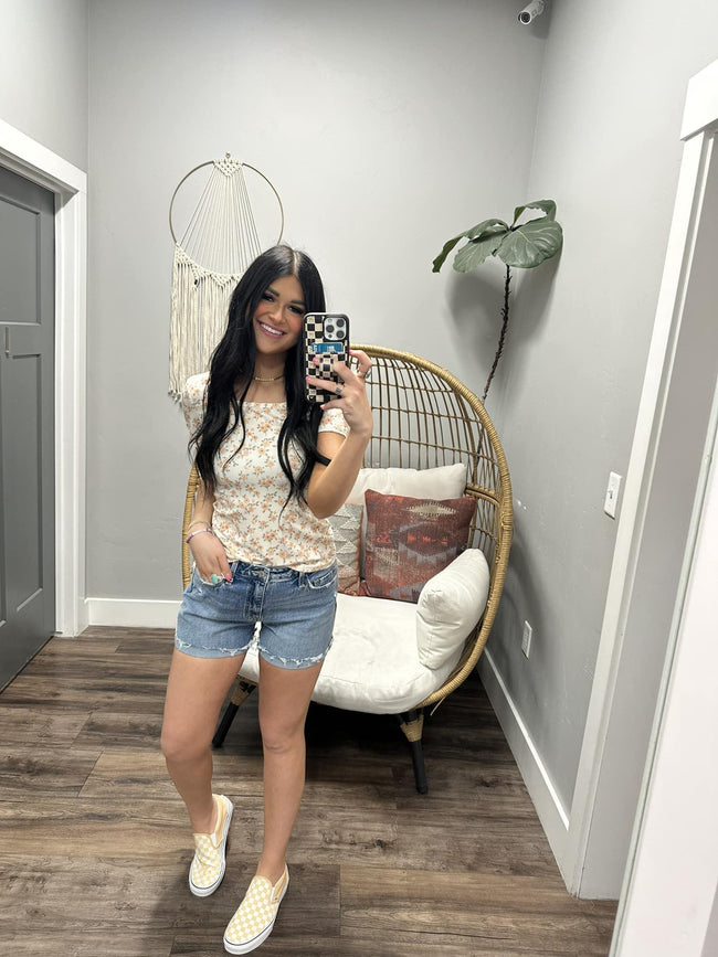 APRICOT NECTAR SHORT SLEEVE RIBBED TOP