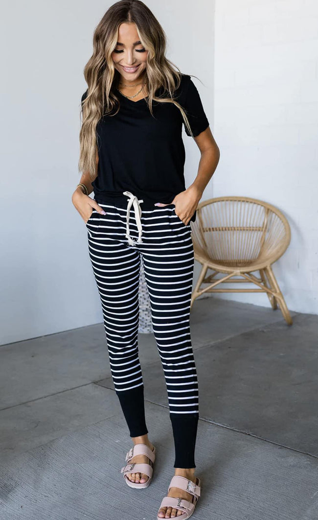 BLACK AND WHITE STRIPE NEW AND IMPROVED JOGGERS