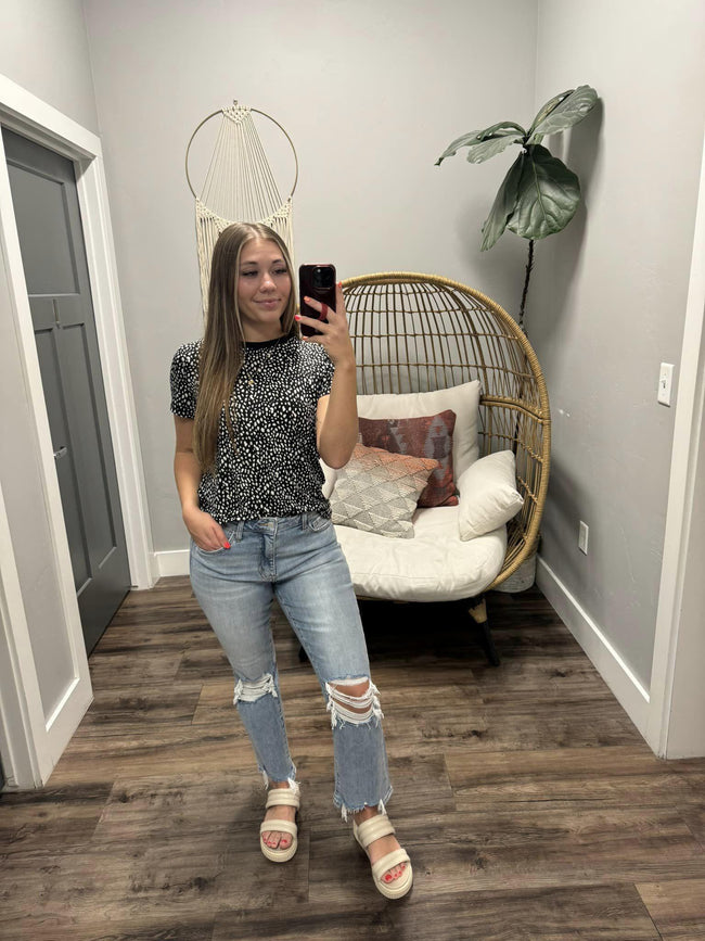 BLACK ANIMAL DOTTED SHORT SLEEVE TOP