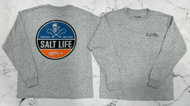 BOYS SALT LIFE HIGH SEA HEATHER GREY LONG SLEEVE TEE