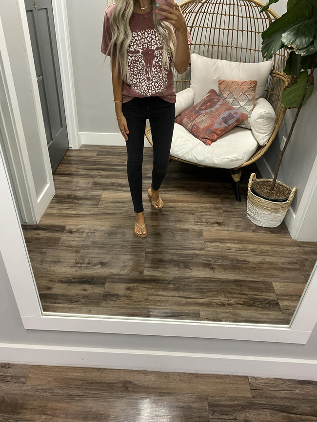 COUNTRY RED LEOPARD BULL SKULL TEE