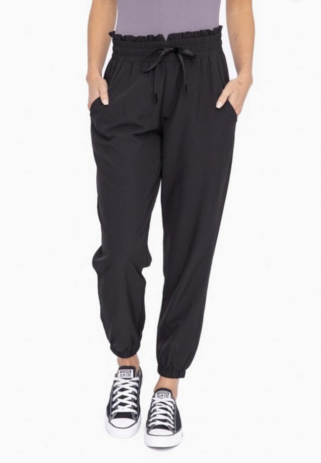DANICA BLACK HIGH WAIST RUFFLE TOP JOGGERS