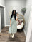 DELENE BLUE FLORAL EMBROIDERED BELTED MIDI DRESS