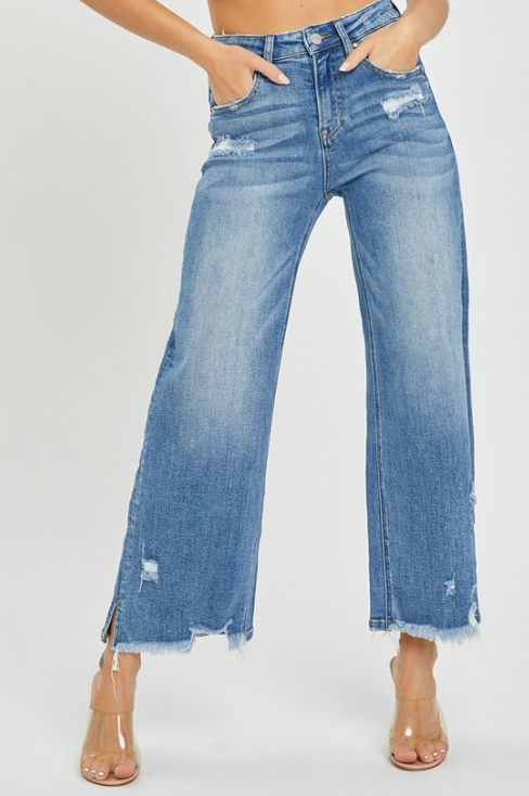 FARRAH HIGH RISE SIDE SLIT DENIM JEANS