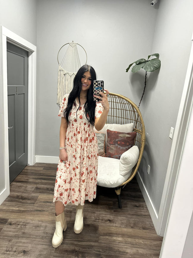 FOREVER YOURS FLORAL SMOCKED DRESS