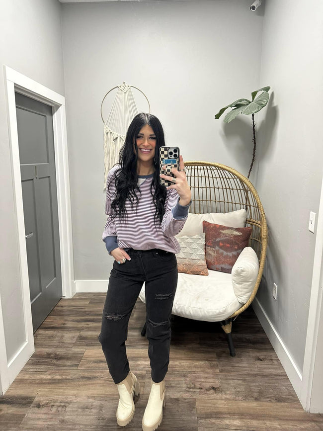 HARMONY PINK NAVY LONG SLEEVE STRIPE SWEATSHIRT
