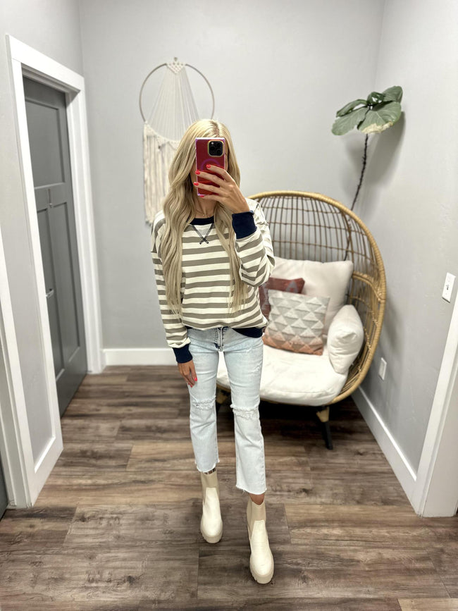 JANICA TAUPE IVORY NAVY STRIPE SWEATSHIRT