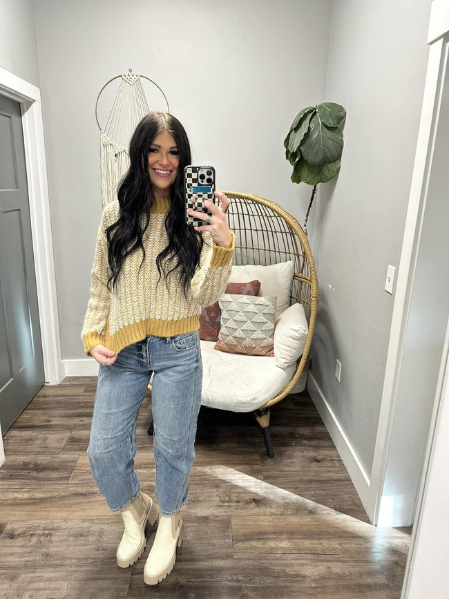 KYLIE MUSTARD KNIT SCALLOP DETAIL SWEATER TOP