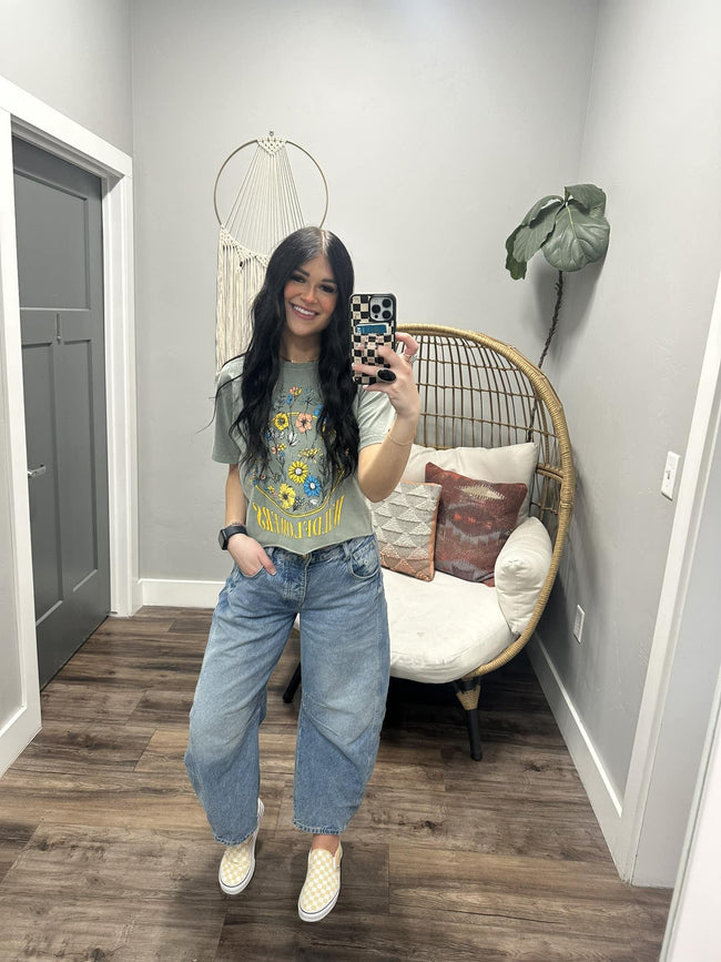 LIGHT OLIVE WILDFLOWERS GRAPHIC TEE