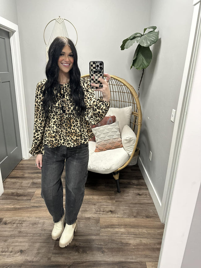 TAUPE LEOPARD DRAWSTRING SKIRT