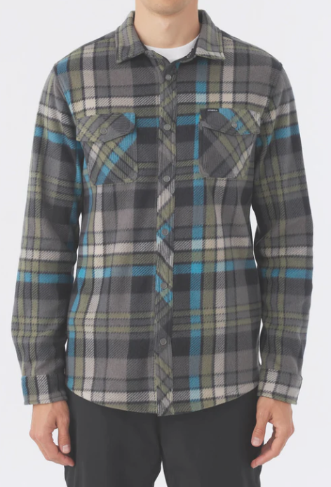 MENS ONEILL GREY GLACIER PLAID SUPERFLEECE JACKET