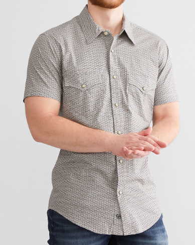 MENS ROCK & ROLL TAUPE GEO STRETCH BUTTON UP