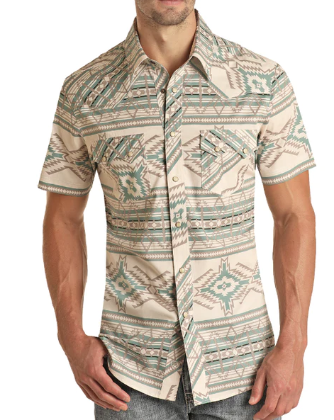 MENS ROCK & ROLL TEAL AZEC WOVEN SNAP BUTTON UP
