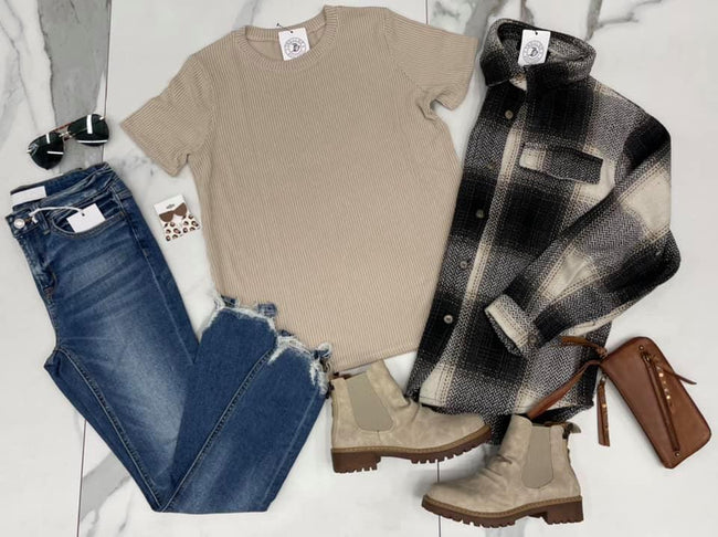 OATMEAL RIBBED SHORT SLEEVE TEE