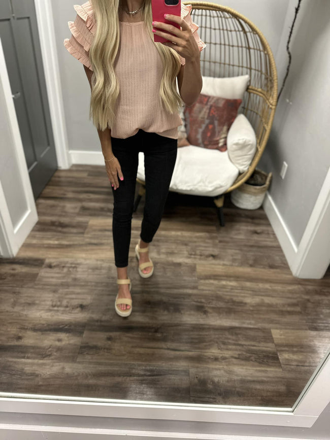 PRETTY THING BLUSHING PEACH RUFFLE SLEEVE BLOUSE
