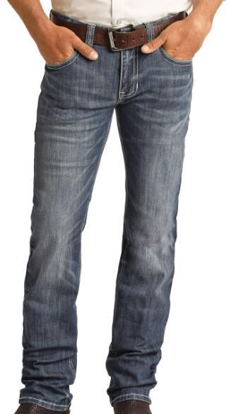 ROCK & ROLL SLIM FIT STRETCH SIMPLE POCKET STRAIGHT BOOTCUT JEANS MEDIUM WASH