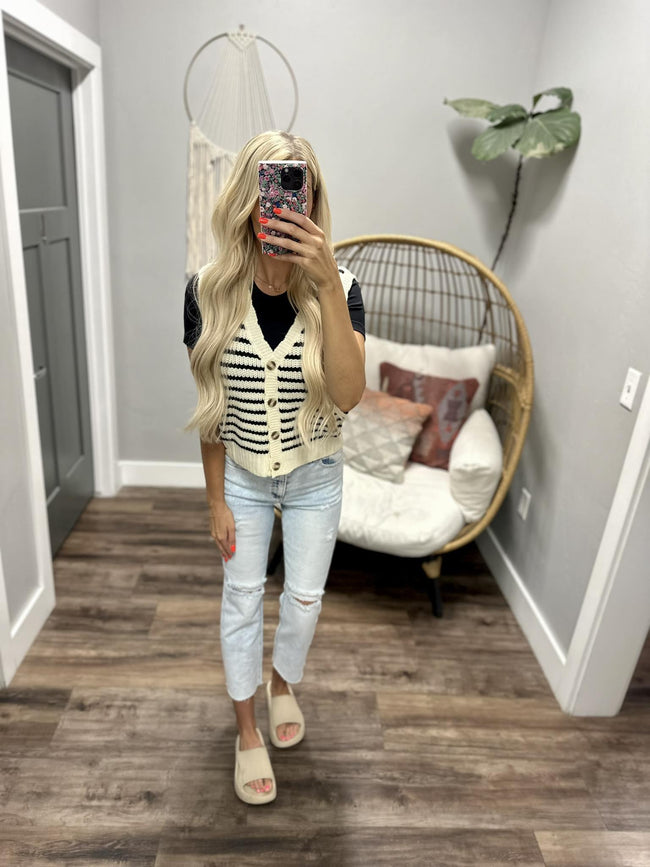 SHAWNEE CREAM AND BLACK BUTTON FRONT SWEATER VEST