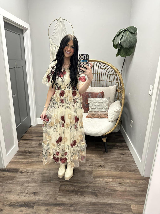 VIVIAN MESH FLORAL EMBROIDERED DRESS